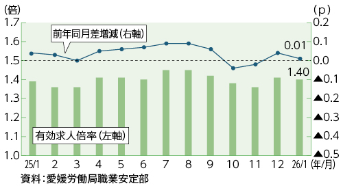 有効求人倍率(季節調整値)は1.40倍と2か月ぶりに低下